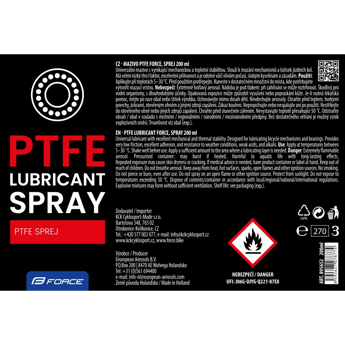 Spray Force lubrifiant PTFE 200 ml