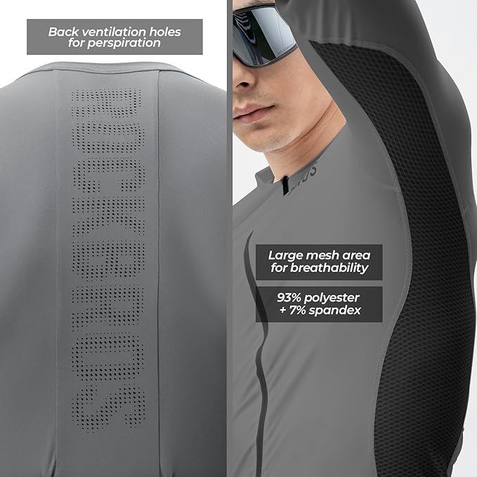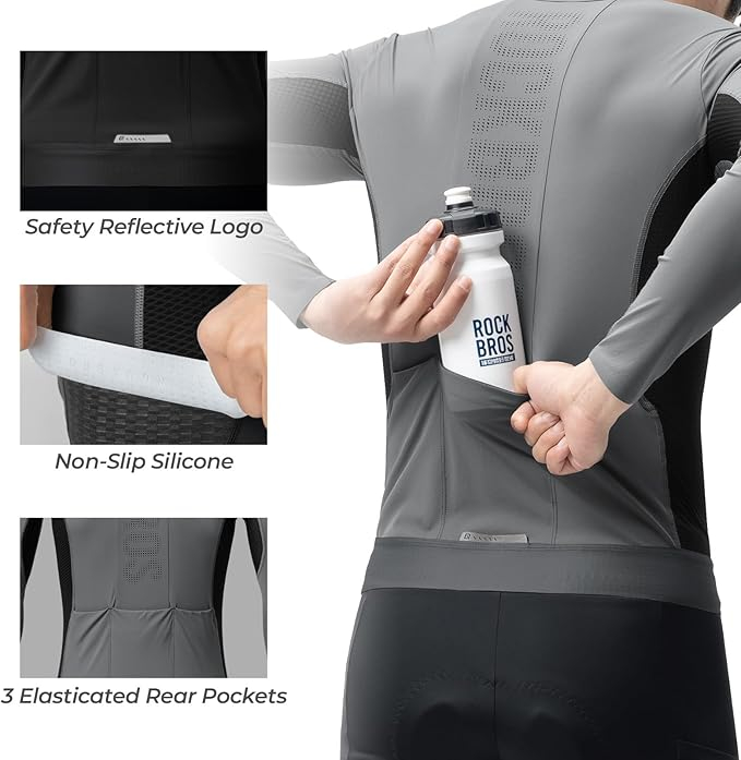 Bluza de ciclism cu maneca lunga, gri, pentru barbati, combina respirabilitatea avansata cu designul aerodinamic. Fabricat dintr-un material respirabil si cu panouri din plasa la subrat, gestioneaza eficient umezeala pentru a te mentine uscat in timpul turariei intense. Croiala sa tridimensionala, mulata, minimizeaza rezistenta la vant si reduce iritatiile pielii. Elementele reflectorizante imbunatatesc vizibilitatea pentru un ciclism mai sigur pe timp de noapte, asigurand atat confort, cat si protectie la fiecare tura. Fabricat din plasa ecologica, foarte elastica, cu un finisaj moale si prietenos cu pielea, acest tricou de ciclism ofera o respirabilitate exceptionala si o eliminare rapida a umezelii. Croiala ergonomica 3D asigura o croiala eleganta care se misca natural odata cu corpul tau pentru un confort maxim. Panourile din plasa tricotate 3D plasate strategic si sectiunile din spate perforate cu laser creeaza un sistem de ventilatie cu doua straturi, accelerand evaporarea transpiratiei si prevenind disconfortul in timpul turariei lungi si de mare intensitate. Dispune de un fermoar YKK de inalta calitate pentru o functionare lina si fara agatare. Reglati cu usurinta ventilatia din mers, fara a va intrerupe ritmul de mers. Trei buzunare spate depoziteaza in siguranta lucrurile esentiale pentru tura, in timp ce detaliile reflectorizante sporesc vizibilitatea in conditii de lumina slaba pentru un ciclism mai sigur dimineata devreme si seara.