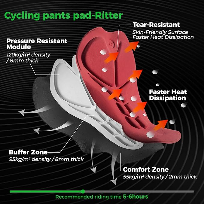 Materialul anti-alunecare este integrat direct în țesătură, fără frecare din cusături. Croiala ergonomică rămâne fixă chiar și în timpul pedalărilor intense, fără a împiedica circulația sângelui. Sistemul de bretele cu „aripioare de fluture” distribuie presiunea pe umeri, optimizat pentru ture de 5–6 ore.