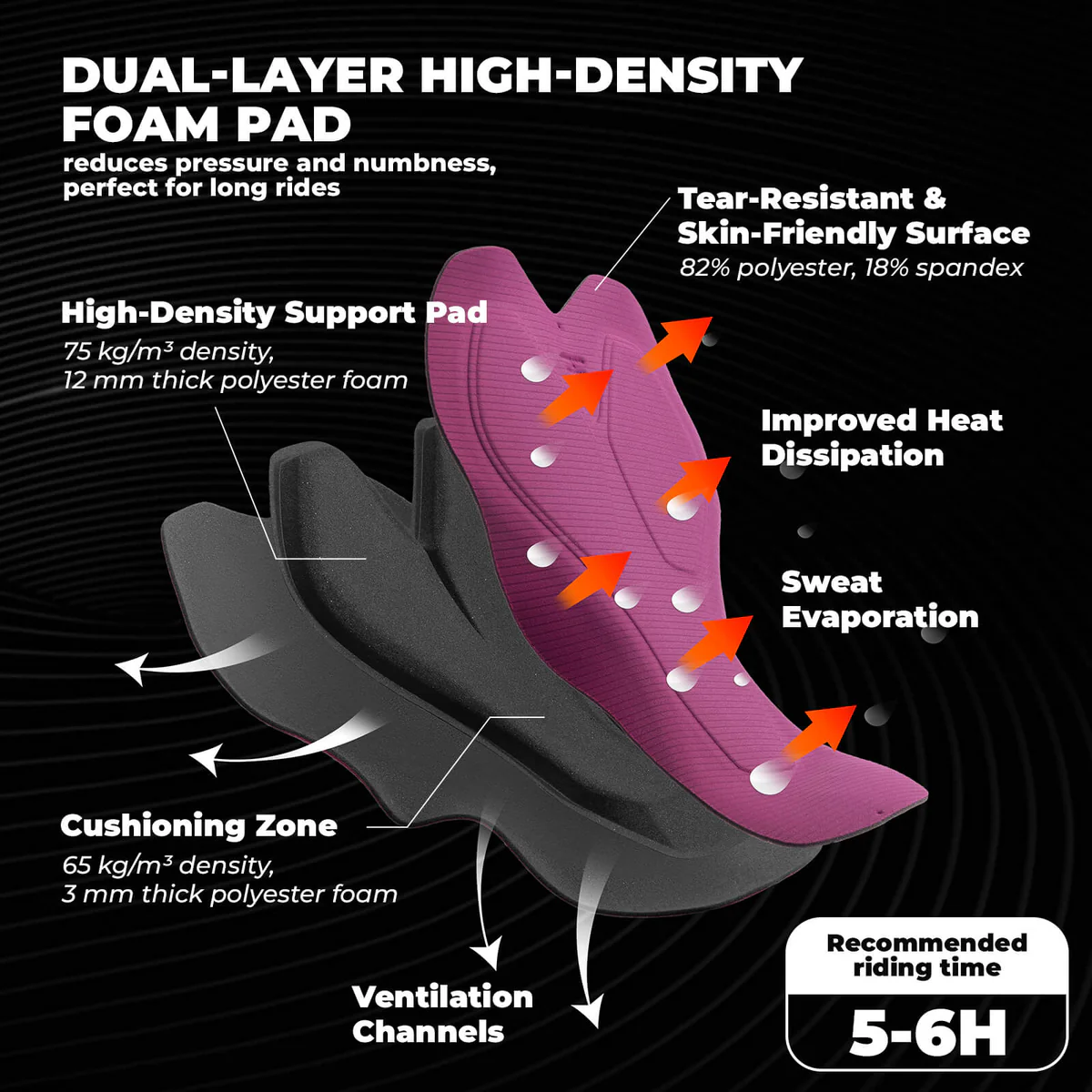 Bucură-te de confort îndelungat datorită bazonului special conceput, care amortizează și distribuie presiunea uniform, reducând punctele dureroase și amorțeala apărută în timpul pedalării prelungite. Materialul respirabil și cu uscare rapidă menține prospețimea și confortul chiar și în zilele cele mai călduroase.