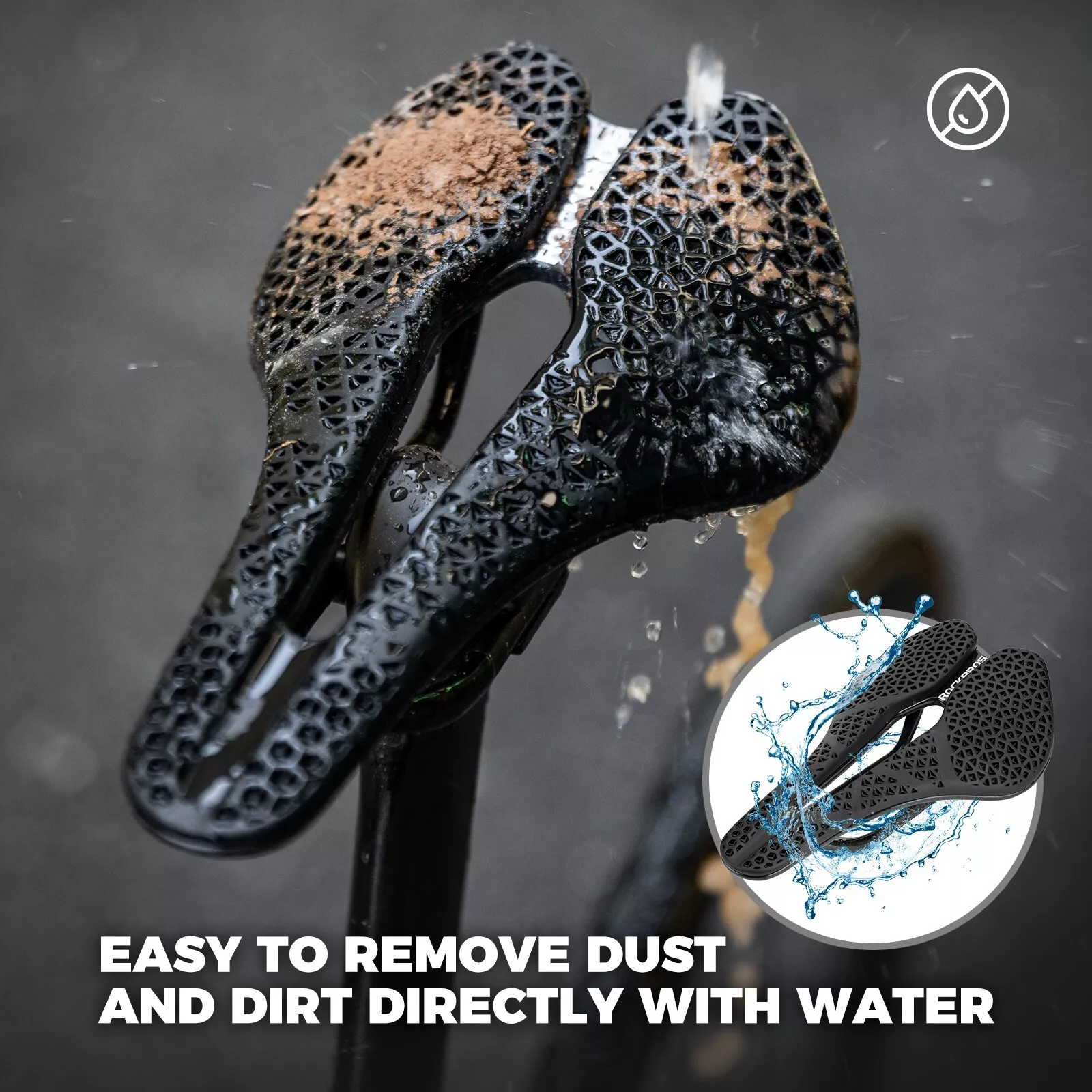 Materialul de amortizare este format dintr-o rețea de blocuri deschise, care permite curățarea ușoară – apa, noroiul și praful se pot spăla direct de pe șa.